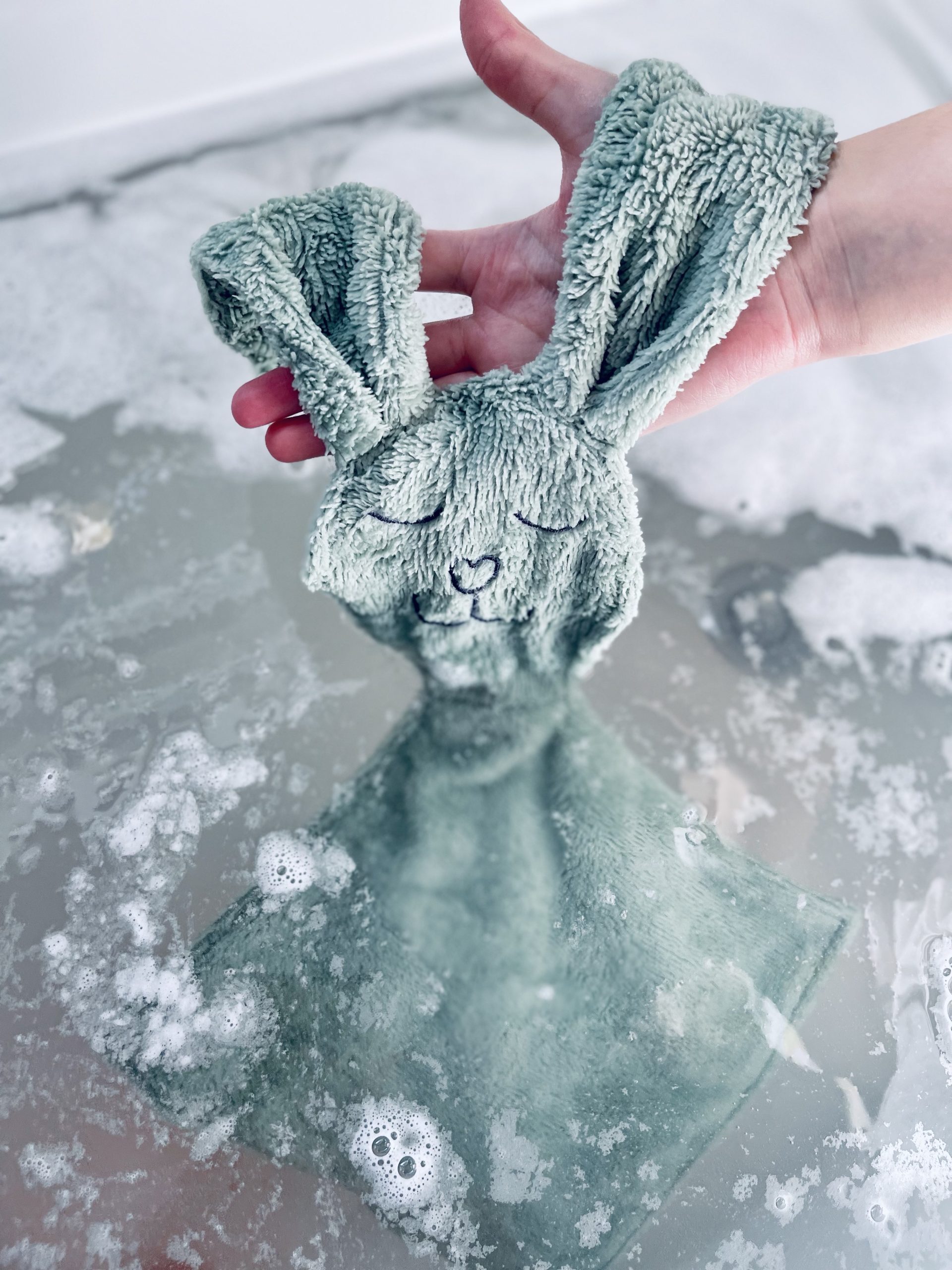 Confectionnée dans une douce ratine, votre enfant appréciera sa peluche de bain !