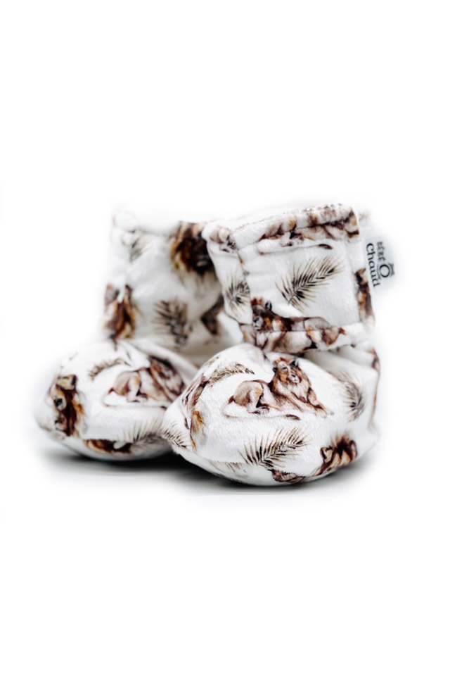 Ne cherchez plus, vous les avez trouvées. Munies d’un élastique à la cheville, les pantoufles Bébé Ô Chaud vous feront oublier ces autres pantoufles qui tombent toujours des pieds. Douces, chaudes et confortables, leur ajustement à velcro permet de les porter à n’importe quel moment de la journée. Avec semelles unies pour les tailles poupons, celles-ci deviennent antidérapantes à partir de la taille 6-9 mois afin de suivre le développement moteur de votre bambin. Un produit bien conçu et durable qui pourra tour à tour tenir au chaud les pieds des petits frères et petites sœurs.